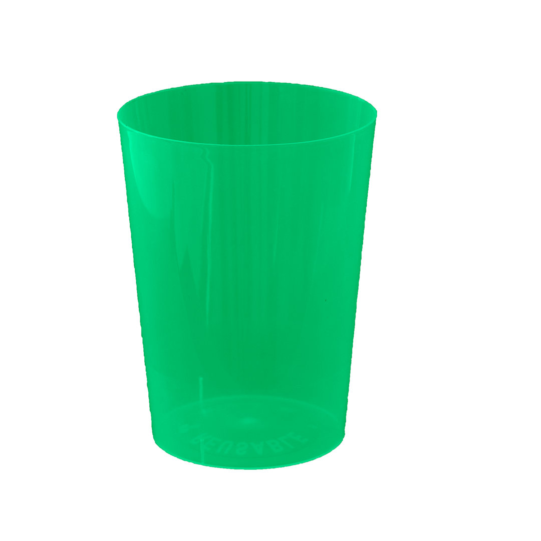 Hecho de polipropileno (PP), totalmente apto para contacto alimentario, resistente a caídas, reutilizable, reciclable y personalizable (para incluir tu logo, diseño o código QR). Su diseño elegante, ligero y apilable facilita su uso y almacenamiento. ¡Una opción sostenible perfecta para tus fiestas con amigos, conciertos, verbenas!